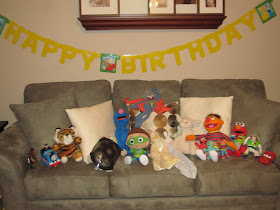 For Noah's special day, I decorated the kitchen table with birthday items and set most of Noah's "friends" at the table or on the couch to help celebrate. He was so excited to see all of this when he walked in the door from school.